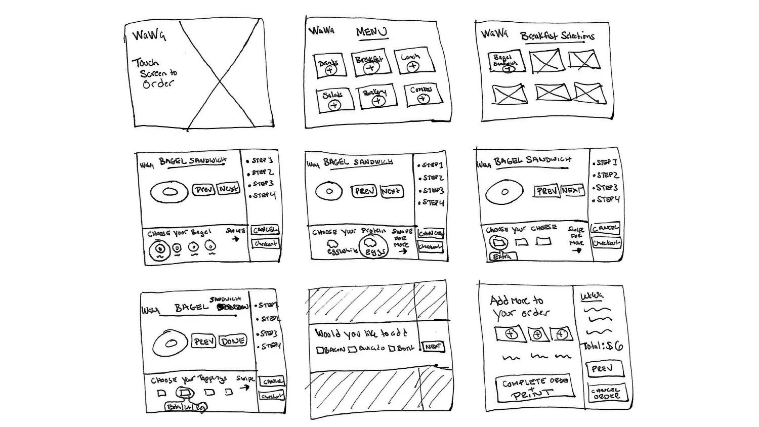 As the UX Designer for this project, I led the end-to-end redesign of Wawa’s in-store ordering kiosk. The goal was to streamline the experience—making it faster, more intuitive, and easier to navigate. Through user research, and a reimagined information architecture, I introduced interface updates that aligned with Wawa’s brand and improved the overall user journey from start to checkout.